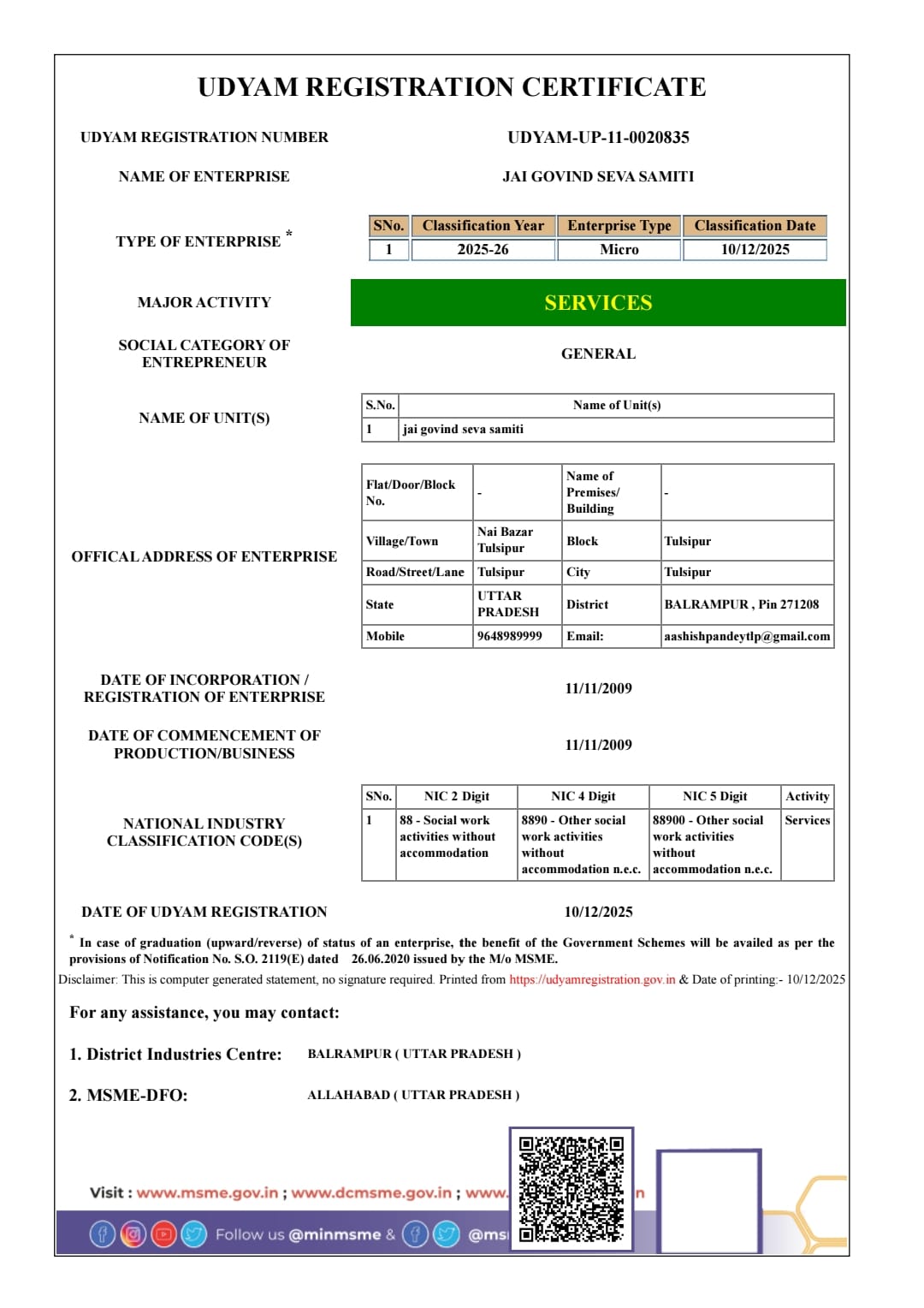We are a professionally governed NGO, proudly MSME registered,Niti Aayog, NGO Darpan enlisted, and ISO certified, ensuring the highest standards of transparency and operational excellence in our social initiatives.